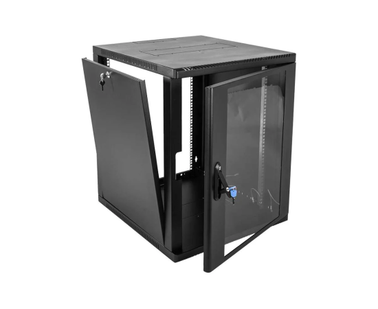 Настенный шкаф 19" ШРН имеет цельнометаллическую сварную конструкцию, он удобен для быстрой установки и монтажа оборудования, так как не требует сборки. Отсутствие острых углов с фронтальной стороны повышают безопасность при эксплуатации и обслуживании шкафов, что помогает исключить человеческие травмы при соприкосновении со шкафом. Комплектация дверью с тонированным ударопрочным стеклом. Новая конструкция стеклянной двери с механическим креплением стекла увеличивает её жесткость, и обеспечивает легкую замену стекла при его повреждении. Возможна установка двери, как с правой, так и с левой стороны. Новый усиленный точечный замок с поворотной ручкой увеличивает жесткость фиксации двери в закрытом положении и защиту от несанкционированного доступа, а также обеспечивает удобство при её открывании.
