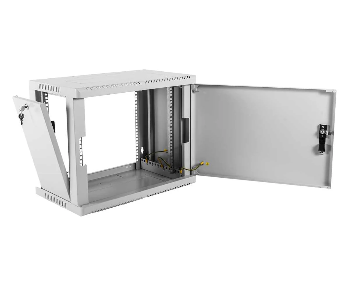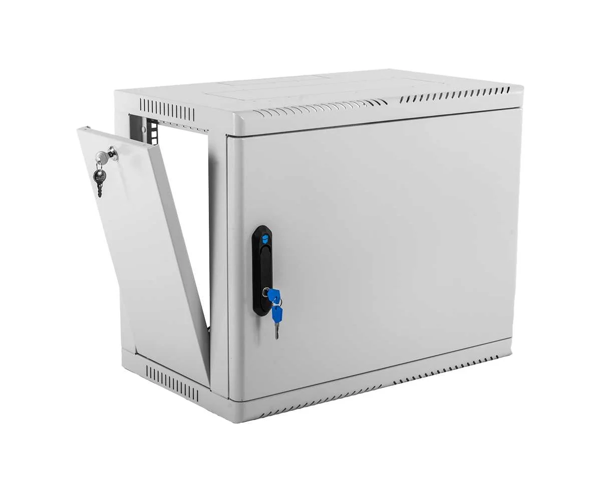 Настенный шкаф 19" ШРН имеет цельнометаллическую сварную конструкцию, он удобен для быстрой установки и монтажа оборудования, так как не требует сборки. Отсутствие острых углов с фронтальной стороны повышают безопасность при эксплуатации и обслуживании шкафов, что помогает исключить человеческие травмы при соприкосновении со шкафом. Комплектация со сплошной металлической дверью. Возможна установка двери, как с правой, так и с левой стороны. Новый усиленный точечный замок с поворотной ручкой увеличивает жесткость фиксации двери в закрытом положении и защиту от несанкционированного доступа, а также обеспечивает удобство при её открывании.