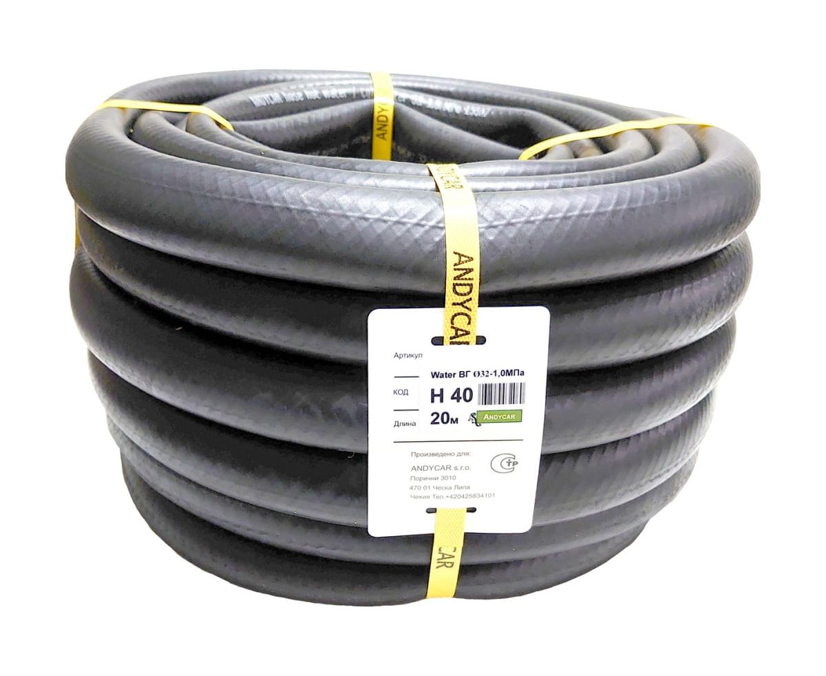 Шланг резиновый Andycar H40 3-х слойный для горячей/холодной воды 32 / 10 атм. бухта 20м