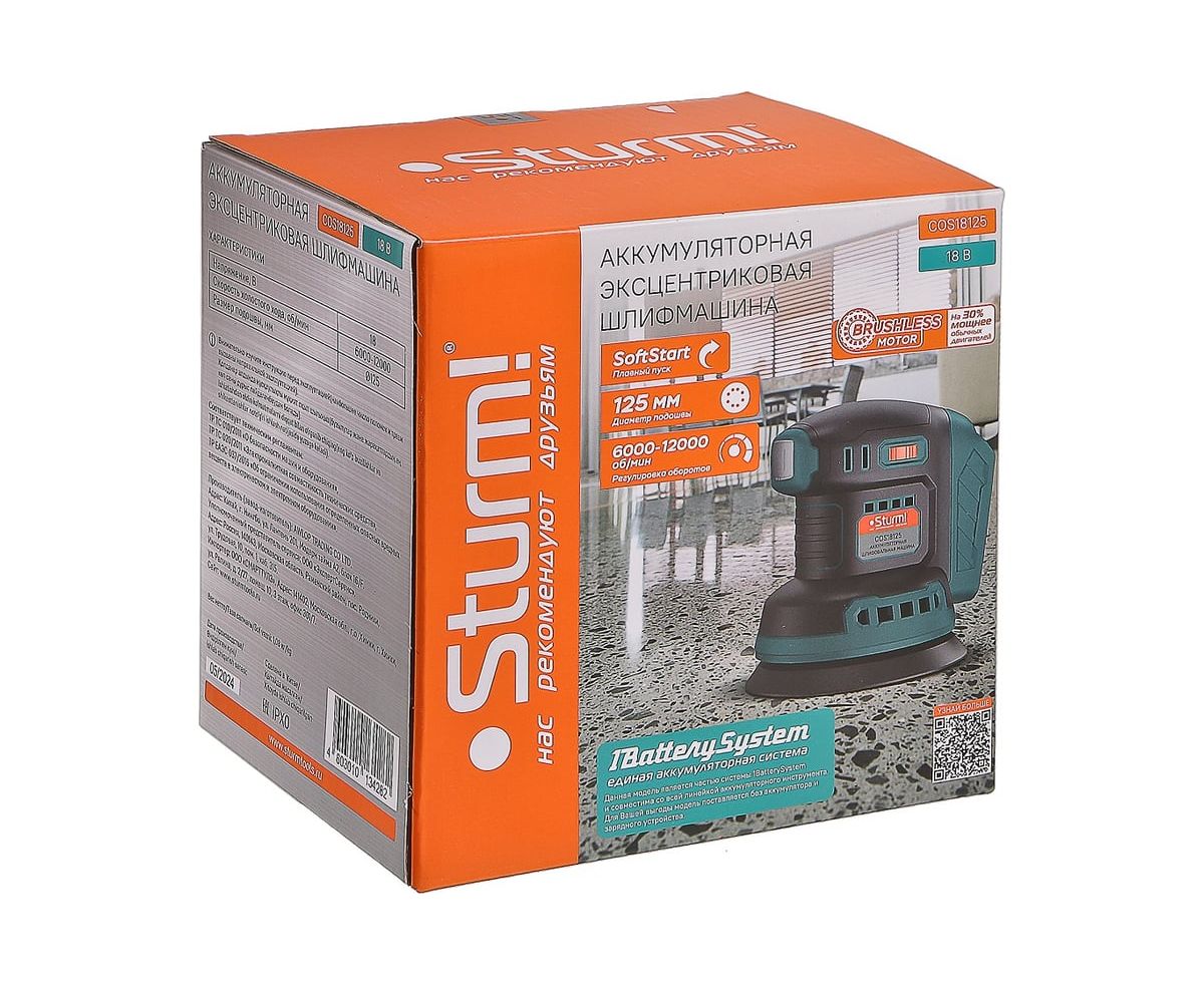 Шлифмашина аккум Sturm! COS18125 без АКБ и ЗУ