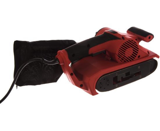 Ленточная шлифмашина Einhell TC-BS 8038 имеет две рукояти для плотного прижима к обрабатываемой поверхности. Все рабочие узлы закрываются корпусом, который защищает их от загрязнения и механических повреждений. Для замены оснастки ключ или любой другой инструмент не требуются. Размер оснастки - 76х533 мм.