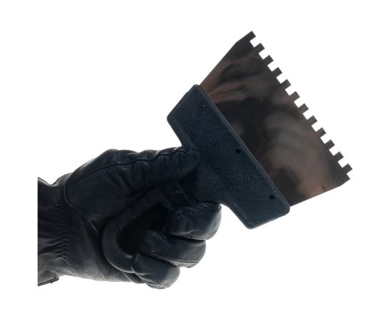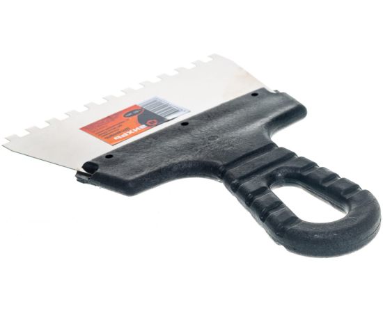 Зубчатый шпатель нержавеющая cталь, пластиковая рукоятка 6х6 мм, 150мм Вихрь 73/3/2/25 используется для нанесения растворов на небольшую по площади поверхность.