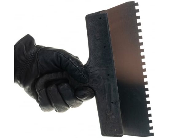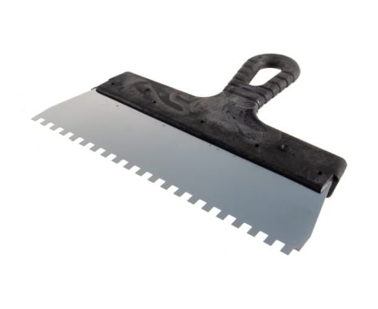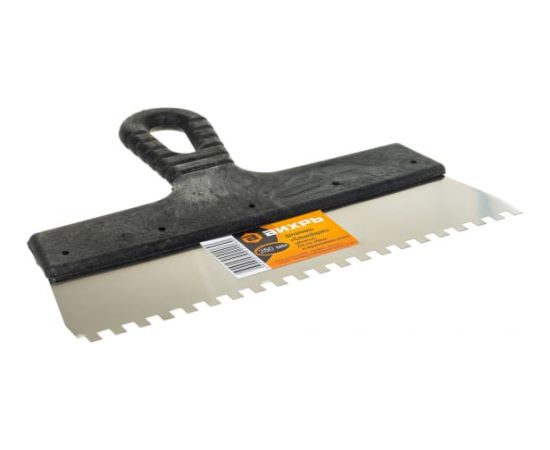 Зубчатый шпатель, нержавеющая cталь, пластиковая рукоятка 6х6 мм, 250мм Вихрь 73/3/2/27 существенно ускоряет выкладывание керамической плитки. За счет зубьев плиточный клей более равномерно распределяется по поверхности. Сталь устойчива к химикатам.