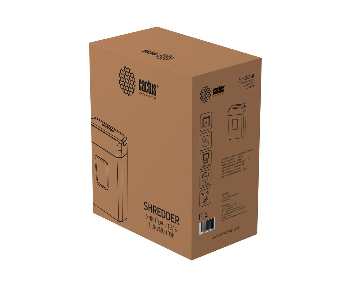 Шредер Cactus CS-SH-C4 белый (секр.P-4) фрагменты 8лист. 13лтр. скрепки скобы пл.карты