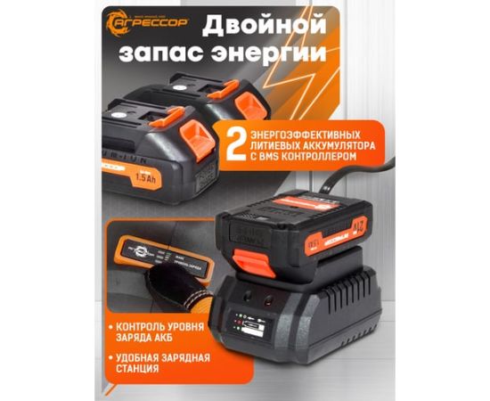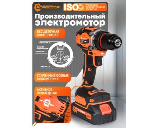 Шуруповерт Агрессор SH-060W 60 Nm, 21V/1.5А, бесщеточный мотор, АКБ 2 шт., зарядное устройство 220В, набор насадок 24 шт., пластиковый кейс