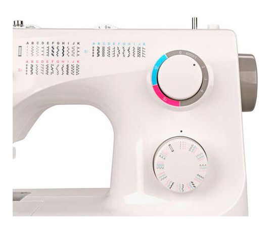 Дополнительно освещение, реверс, регулятор натяжения нити, регулировка ширины зигзага, регулировка длины стежка, максимальная скорость 500 об/мин, дополнительный подъем лапки, горизонтальное расположение катушки, встроенный нитеобрезатель