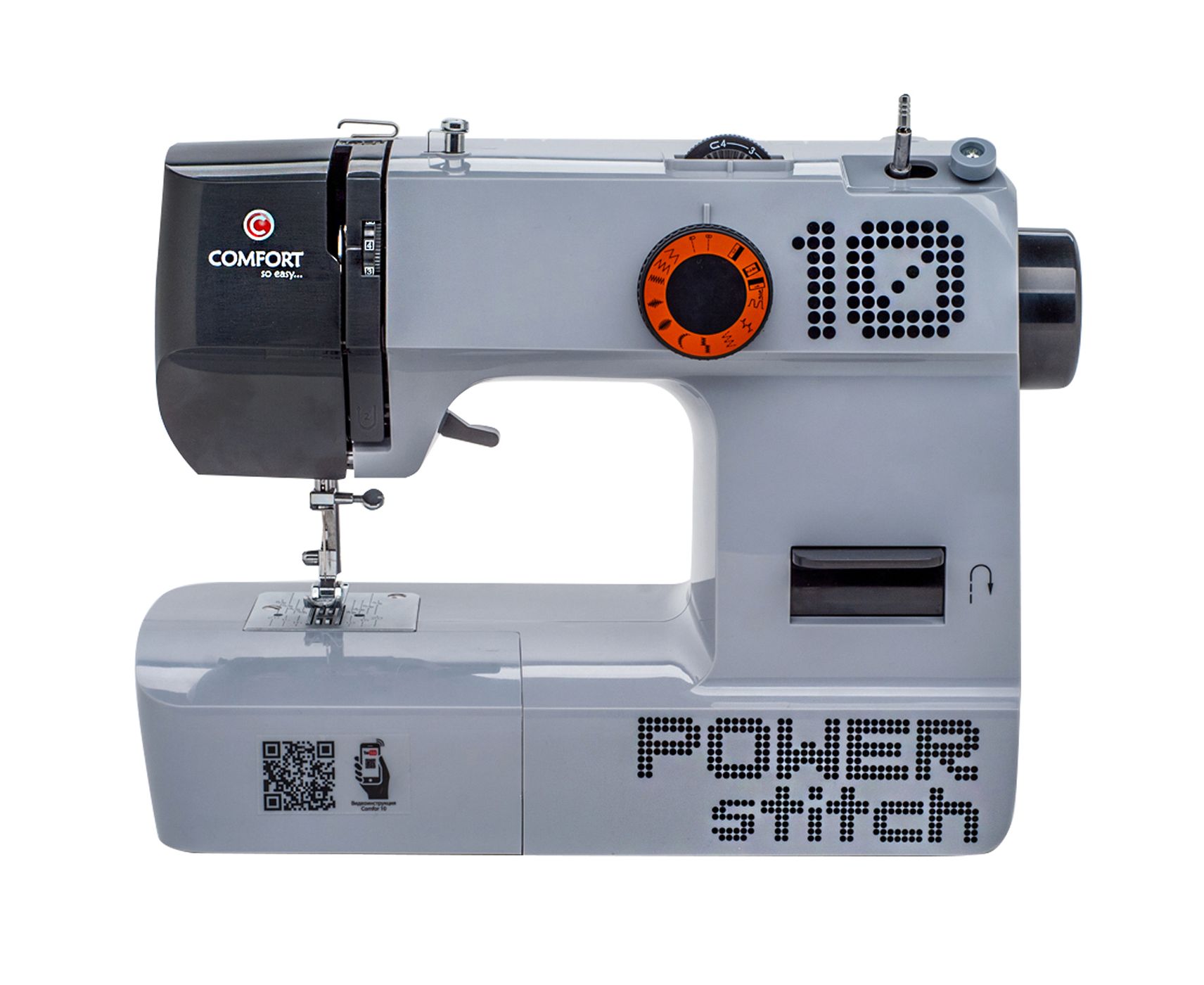 Comfort 10 - простая, доступная, надежная по конструкции бытовая швейная машина с металлическим челноком и рамой. Игольная пластина, лапкодержатель, лапка и выдвижной катушкодержатель - тоже стальные на этой модели. Прибор может быть использован для выполнения всех швейных работ по дому.15 операций. Петля полуавтомат. Регулятор длины стежка позволяет менять длину стежков под свои потребности. Регулятор натяжения верхней нитки. Шестиполосная зубчатая рейка. Встроенная емкость для аксессуаров. Свободный рукав. Клавиша реверса. Автоматическое отключение намотки шпульки при полном заполнении нитками и автоматическое выключение основного привода на этой операции. Электронная педаль управления. Встроенное освещение. Мощность LED лампы: 1 Вт. Нитеобрезатель. Скорость - 600 строчек в минуту. QR-код с ссылкой на видео инструкцию на корпусе. Внимание, на корпусе машинки, рядом с основным катушкодержателем есть техническое отверстие, которое позволяет закрепить в нем дополнительный катушкодержатель и приспособить модель для шитья двойной иглой.