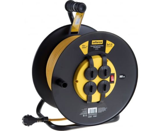 Силовой удлинитель Inforce 09-15-06 на катушке 4гнезда с/з ПВС 3х1,5 16A 50м IP 44