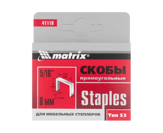 Скобы MATRIX 41118 8 мм, тип 53, 1000 шт.