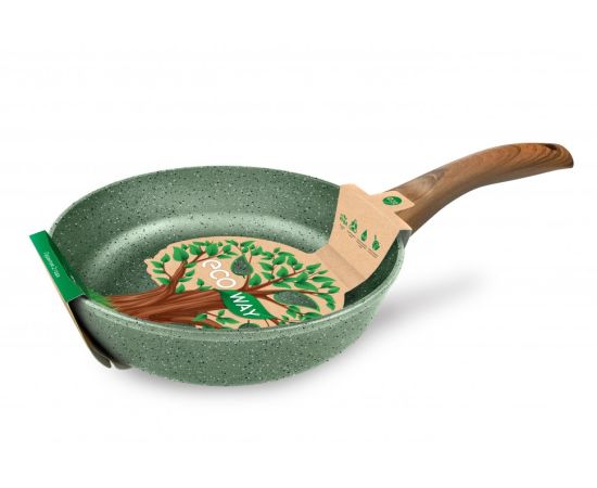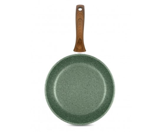 Сковорода выполнена в натуральном зеленом цвете и комплектуется эргономичной ручкой с имитацией дерева.