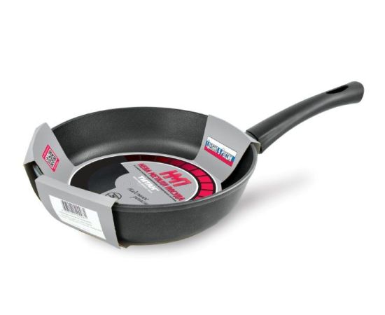 Описание: Литая сковорода с несъемной ручкой идеально подходит для жарки и томления. Форма сковороды универсальна: сочетает в себе достаточно высокие борта и большую полезную площадь дна. Она отлично подходит для приготовления таких блюд как котлеты, шницели, тефтели, голубцы, жаркое, гуляш, а также гарниров.