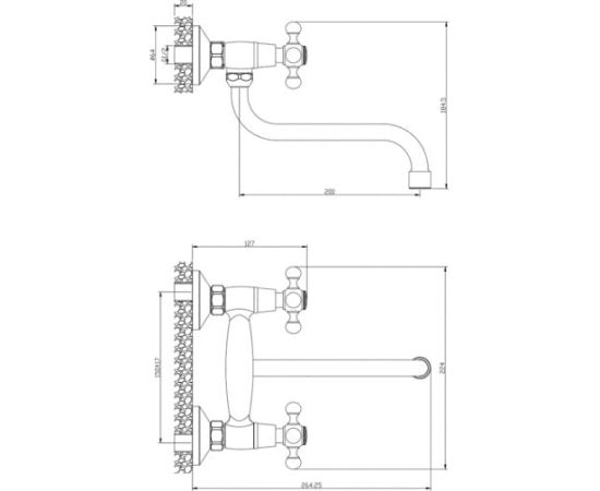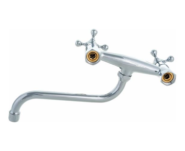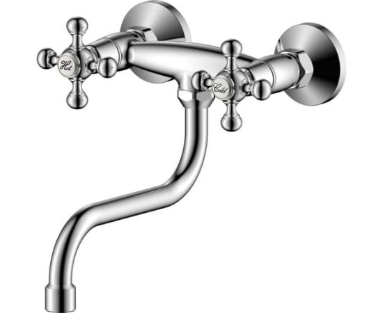 Настенный смеситель для кухни OLIVE'S 01410GR с удобными маховиками и поворотным изливом 20 см.
