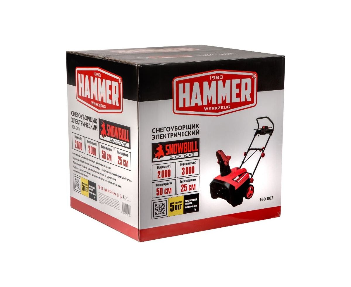 Снегоуборщик электрический Hammer Snowbull2000E 2кВт 2.7л.с