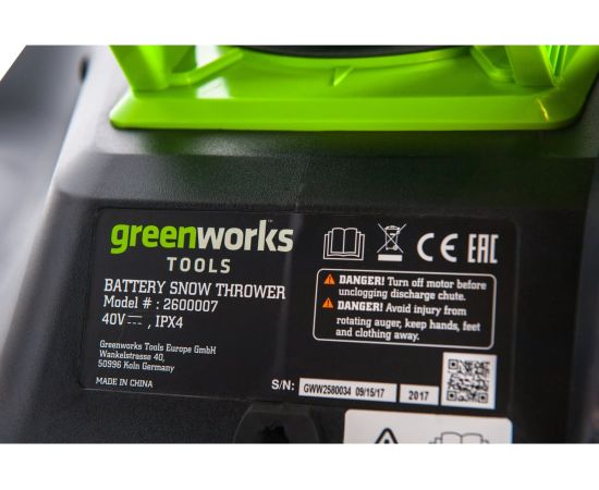 Снегоуборщик GreenWorks 2600007USB4 аккумуляторный c USB и ЗУ 40V, 51 см, бесщеточный, с 1хАКБ 4 Ач
