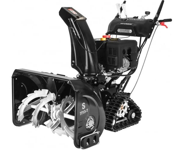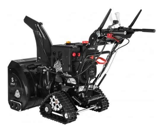 Снегоуборщик Hyundai S 7713-T перемещается при помощи гусениц, что значительно повышает проходимость и сцепление с поверхностью.