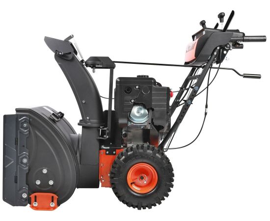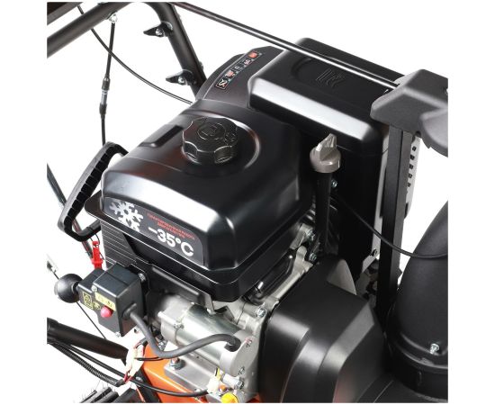 Очень мощный колесный снегоуборщик с двигателем 11 л.с., что в сочитании с большой шириной захвата в 81 см., наличием фары и электростартера позволяет использовать его в самых сложных условиях и при больших объемах выпавшего снега. Функция "one hand operation".