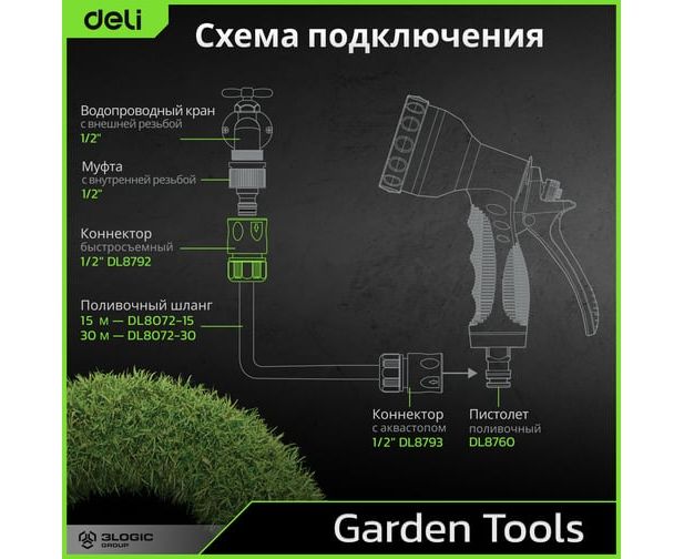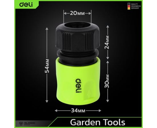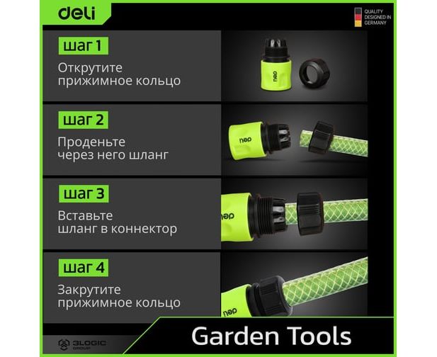 Коннекторы Deli обеспечивают легкое и быстрое подключение шланга к поливочному инструменту. Это экономит ваше время и упрощает процесс настройки системы полива. Благодаря простому и эффективному дизайну, вы сможете с легкостью подключить и отсоединить шланг, не тратя лишнего времени и усилий.