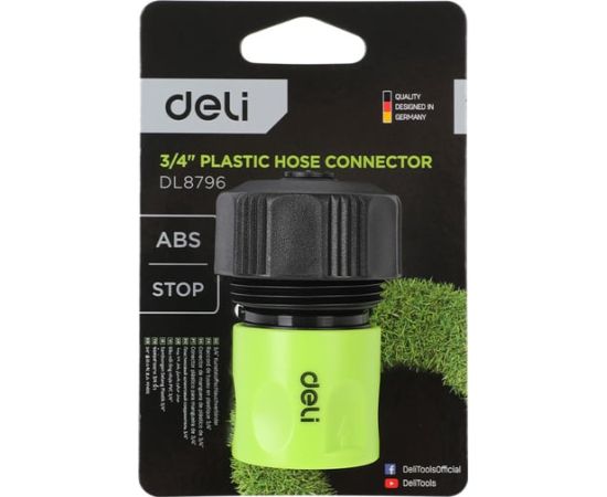 Соединитель Deli DL8796 быстросъемный для шланга с аквастопом 3/4" ударопрочный пластик