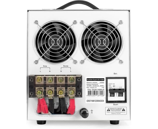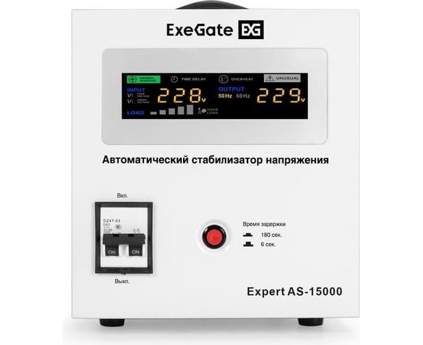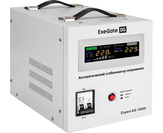 Стабилизатор напряжения ExeGate Expert AS-15000 EX291768RUS 15000ВА, вход 140-260В, цветной дисплей, выход 220В±8%, КПД 98%, 5 уровней защиты