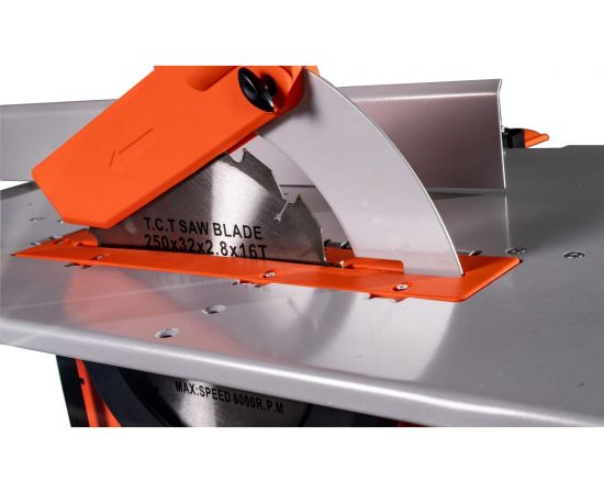 1.Пильный диск закрыт кожухом для защиты оператора от травм и попадания мелких частиц.