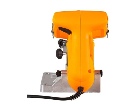 Станок для заточки цепей предназначен для заточки зубьев пильной цепи бензиновых и электрических цепных пил. Станок предназначен для эксплуатации при температуре окружающей среды от -10°С до +40°С, относительной влажности воздуха не более 80% и отсутствии прямого воздействия атмосферных осадков и чрезмерной запылённости воздуха. Станок для заточки цепей состоит из привода, представляющего собой коллекторный электродвигатель и ременной редуктор, размещенный в пластмассовом корпусе.