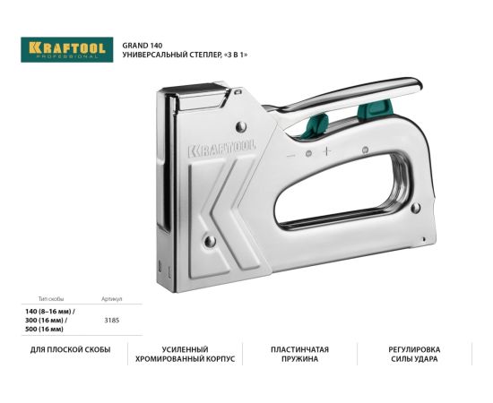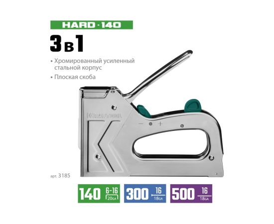 Степлер стальной тип 140, 300, 500, KRAFTOOL HARD-140, 3185 - профессиональный мощный стальной степлер с ударным механизмом рессорного типа, увеличенная мощность, удар без отдачи.