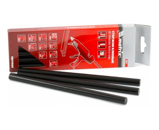 Стержни клеевые MATRIX 11 X 200 мм, черные, 6 шт. (930721)
