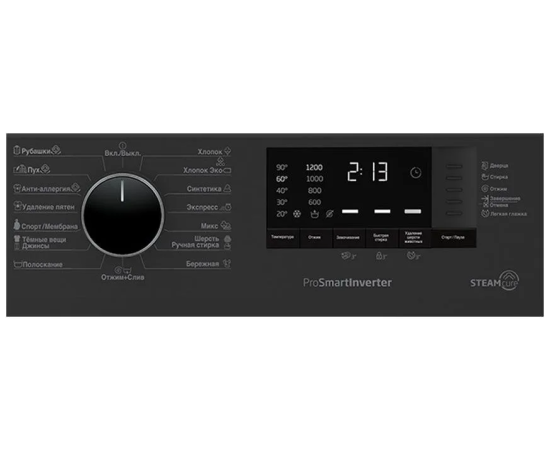 Программы стирки: Быстрая стирка, Полоскание, Полоскание + отжим, Стирка деликатных тканей, Стирка изделий из синтетики, Стирка изделий из хлопка, Стирка изделий из шерсти, Стирка пуховых вещей, Стирка рубашек, Стирка спортивной одежды, Стирка темных вещей, Удаление пятен, Стирка изделий из джинсовой ткани, Стирка смешанных тканей