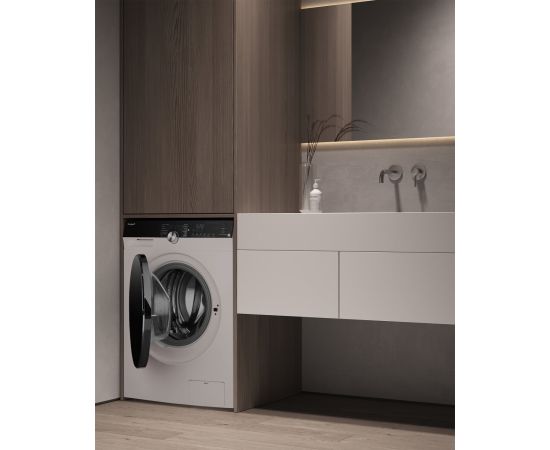 Отдельностоящая стиральная машина Weissgauff, оснащенная инверторным двигателем, функцией пара и опцией "Без пятен", имеющая показатели загрузки до 7 кг белья и скорости отжима до 1200 оборотов в минуту.