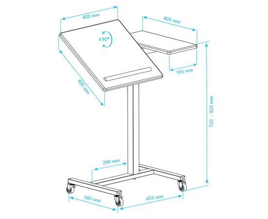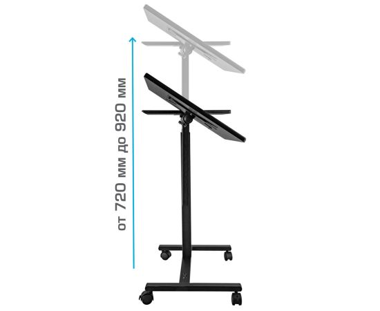 Одно из основных преимуществ этого стола - регулировка высоты и наклона поверхности стойки. Вы сможете легко настроить угол наклона до 90 градусов, а также регулировать высоту от 720 до 920 мм. Это позволит вам подобрать наиболее удобное положение для работы или просмотра контента.