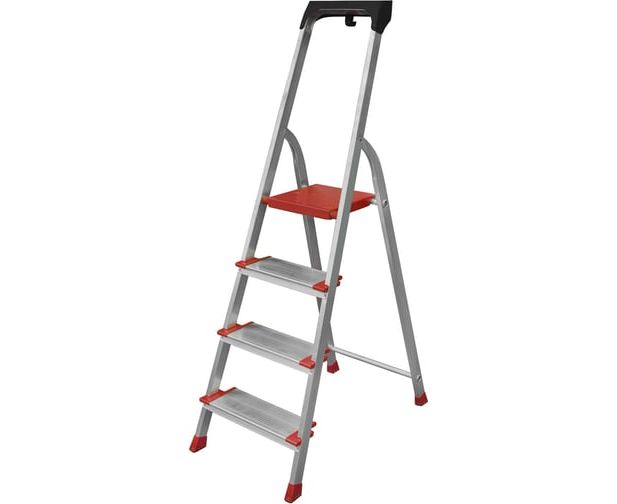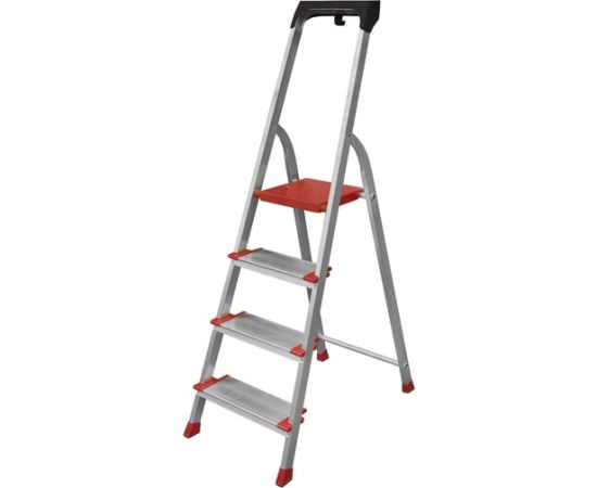 Свободностоящая стремянка Gigant 4 ступеней, PROFI AAA-03 имеет большие противоскользящие наконечники, профилированные ступени шириной 125 мм - для безопасного спуска/подъёма.