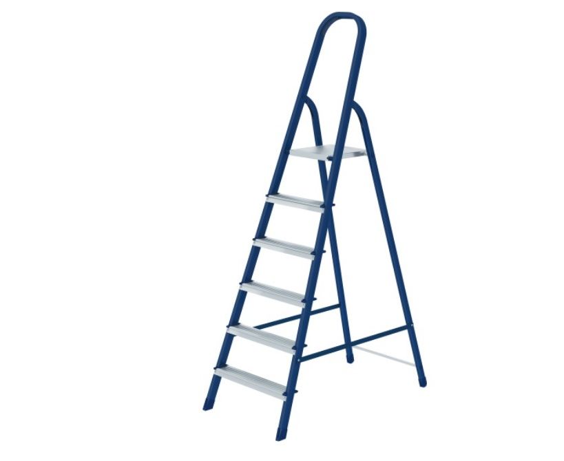 Стальная стремянка за счет прочной и надежной конструкции может применяться как в быту, так и в профессиональной деятельности (например, при проведении строительных работ).