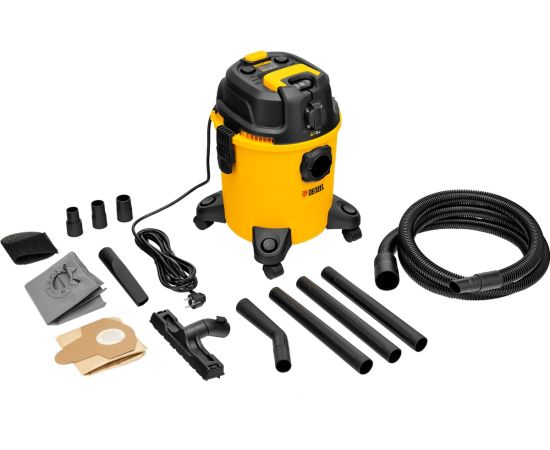 Строительный пылесос DENZEL RVC20 желтый, без АКБ, без ЗУ (28202)