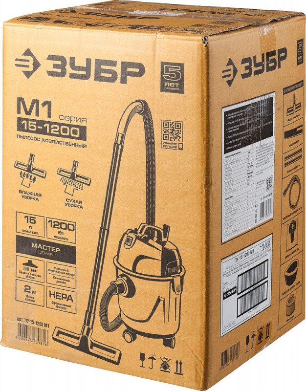 Строительный пылесос Зубр ПУ-15-1200 М1