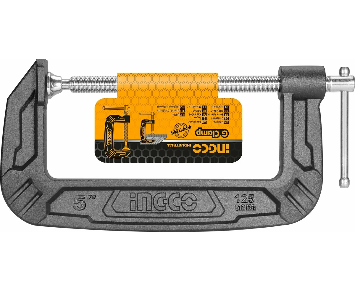 G-образная cтрубцина INGCO 125 мм HGC0105 обладает прочной стальной рамой.