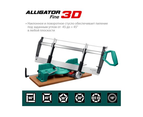 Прецизионное стусло KRAFTOOL Alligator 3D, 600 мм 15451-600 предназначено для распила потолочных плинтусов и заготовок из различных материалов под заданным углом. Поворотная конструкция облегчающей работу с заготовками из древесины и прочих материалов.