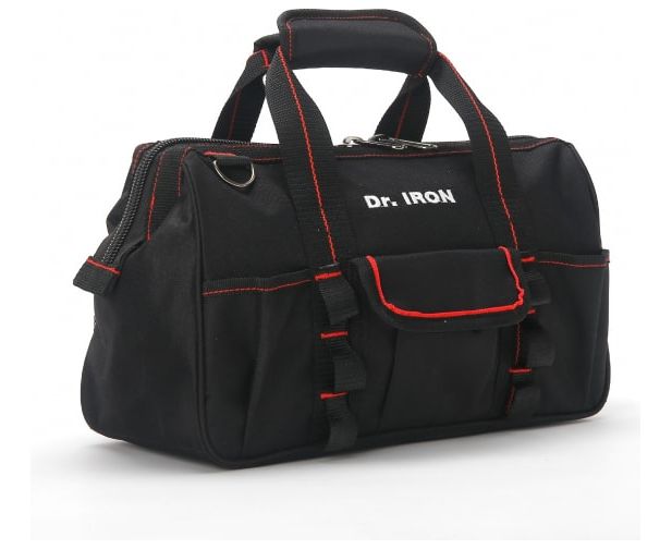 Сумка для инструмента Dr. IRON 360x150x230 мм, с ремнем DR1004 используется для хранения и транспортировки инструмента, различных деталей и крепежа. Экологически чистый безопасный материал сумки не содержит токсичных веществ: фенолов, формальдегидов, тяжелых металлов. С внешней стороны сумки - полиэстер Oxford 600D с ПВХ пропиткой, с внутренней стороны - подкладка из полиэстера.