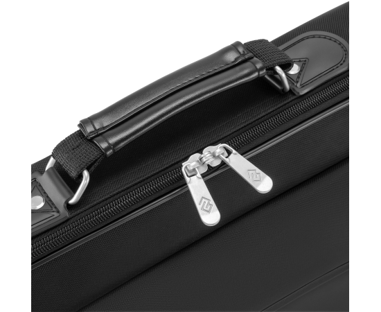 Удобная сумка классического дизайна для ноутбуков с экраном 15,4 дюйма. В основном отделении предусмотрены съемная перегородка и специальный ремешок для плотной фиксации внутри. Также внутри есть несколько полезных отделений для принадлежностей и личных вещей.