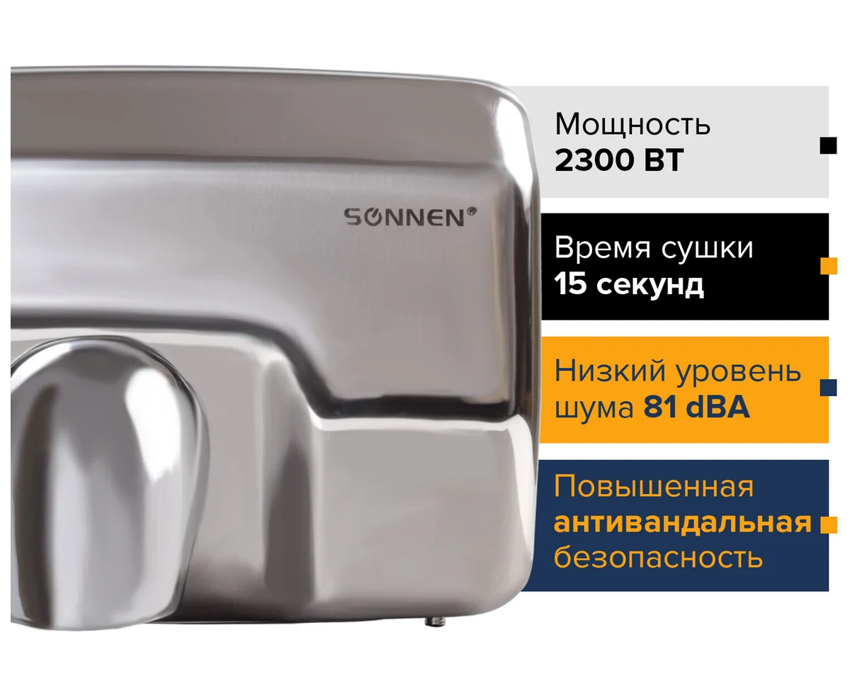 Технические характеристики SONNEN HD-798S 2300 Вт, время сушки 15 секунд, нержавеющая сталь