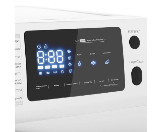 Блокировка от детей - это дополнительная безопасность и гарантия уверенности в том, что сушильная машина не будет случайно включена.