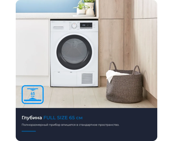 Режимы работы Количество программ сушки 16 Обработка паром Нет Заводские данные Загрузка белья для сушки, кг 8 Прямой привод Да Инверторный двигатель Да Основные Тип загрузки Фронтальная Тип сушки Конденсационная Класс энергопотребления A++ Корпус Размеры, мм (ШхГхВ) 595*650*845 Особенности конструкции Открытие люка на 180°, Тепловой насос Установочная глубина 65 см Материал бака Нержавеющая сталь Материал барабана Оцинкованная сталь Ширина, см 59.5 Глубина, см 65 Высота, см 84.5 Вес, кг 49 Общие Тип Сушильная машина Партномер ZDF80HP Страна-изготовитель Китай Гарантийный срок 1 год Управление Управление Электронное Отложенный старт, ч 24 Системы защиты Блокировка от детей, Защита от перегрева Наличие дисплея Да Функциональные особенности: Автоматическая очистка от моющих средств, Звуковой сигнал, Отсрочка запуска Дополнительные Цвет Белый