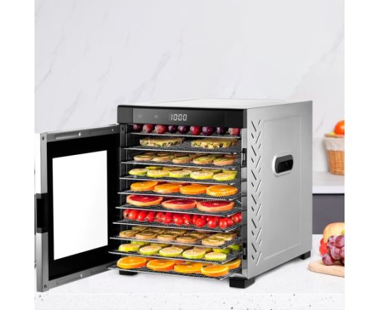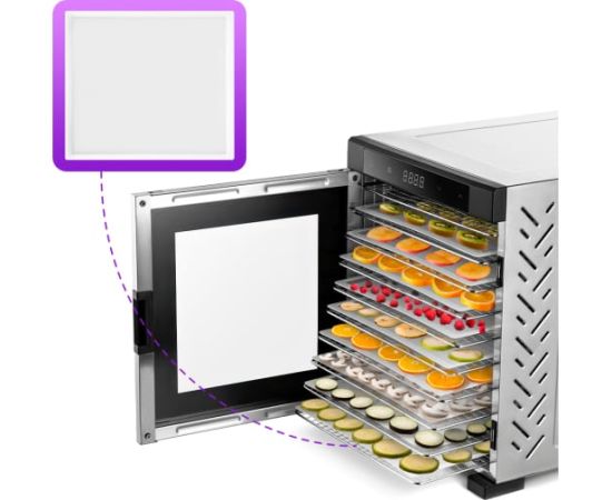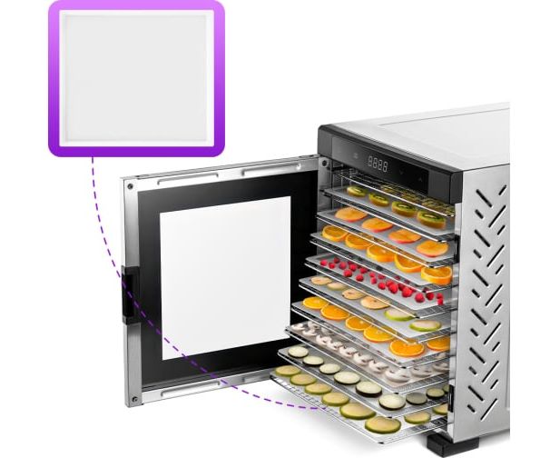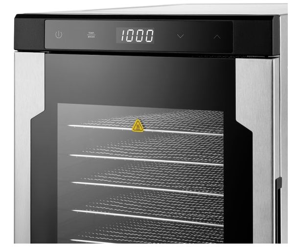На сушилке можно установить температуру сушки в диапазоне 35–75 оС с шагом 5 градусов. Сушилка оснащена таймером до24 часов работы с шагом 30 минут.