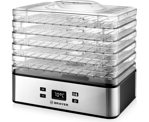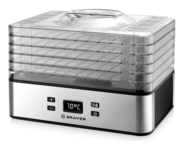 Сушилка для овощей и фруктов BRAYER BR1900 предназначена для сушки фруктов, овощей, лекарственных или пряных трав, рыбы и т.п. Не подходит для сушки жирных продуктов (например, говядины, свинины и т.д.).