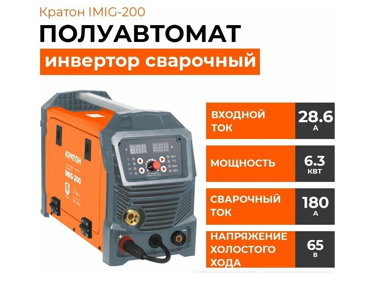 Сварочный инвертор полуавтомат КРАТОН IMIG200 3 04 02 023 предназначен: