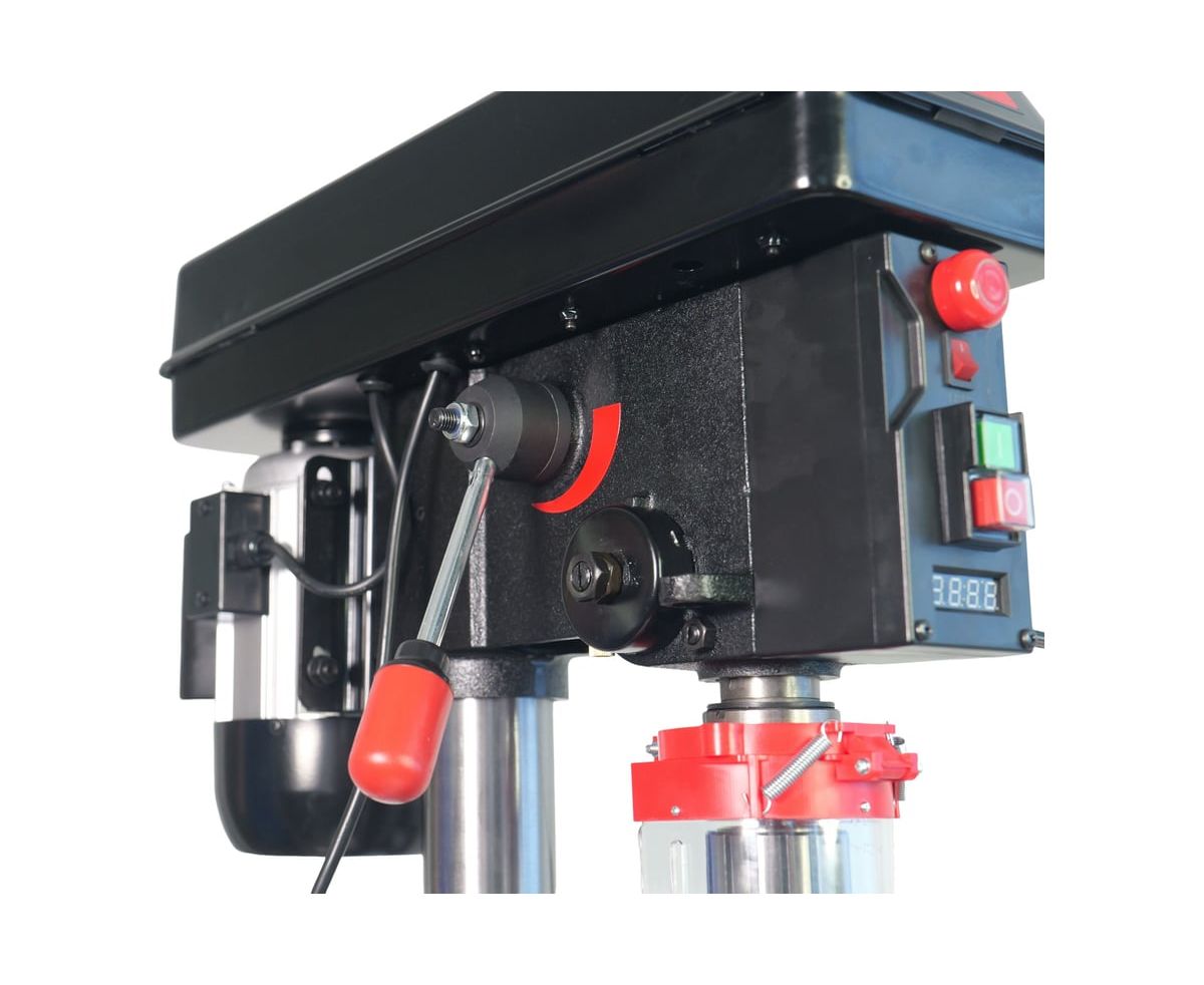 Сверлильный станок BUCKTOOL с вылетом 12 дюймов (305 мм) предназначен для профессионального использования. Оснащен мощным индукционным двигателем 6.2 А (0.75 л.с.), обеспечивающим стабильный крутящий момент при работе с деревом, металлом и пластиком. Плавная регулировка скорости от 580 до 3200 об/мин с цифровым дисплеем позволяет точно подбирать режим для разных материалов. Чугунный стол поворачивается на 360° и наклоняется до 45° в обе стороны. Лазерный целеуказатель и светодиодная подсветка повышают точность позиционирования. Безопасность обеспечивают аварийный выключатель и защита от повторного включения.