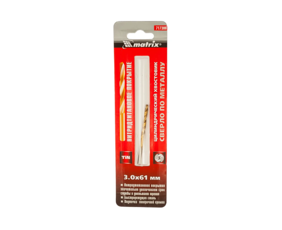 Сверло Matrix 717300 по металлу Д-3мм Дл-61мм (1пред.) для дрелей