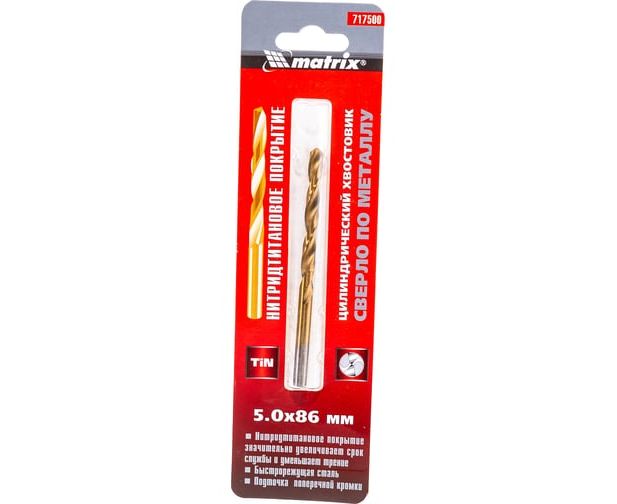 Сверло Matrix 717500 по металлу Д-5мм Дл-86мм (1пред) для дрелей