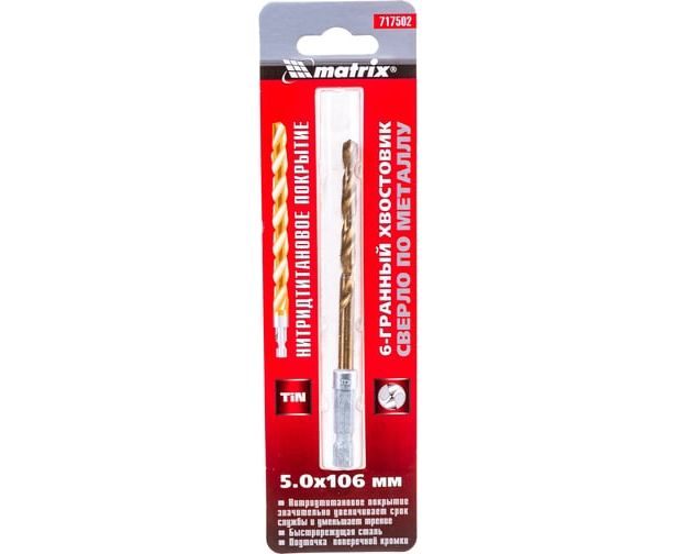 Сверло Matrix 717502 по металлу Д-5мм Дл-106мм (1пред) для дрелей