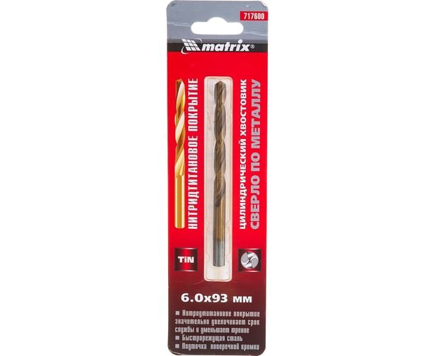 Сверло Matrix 717600 по металлу Д-6мм Дл-92мм (1пред) для дрелей