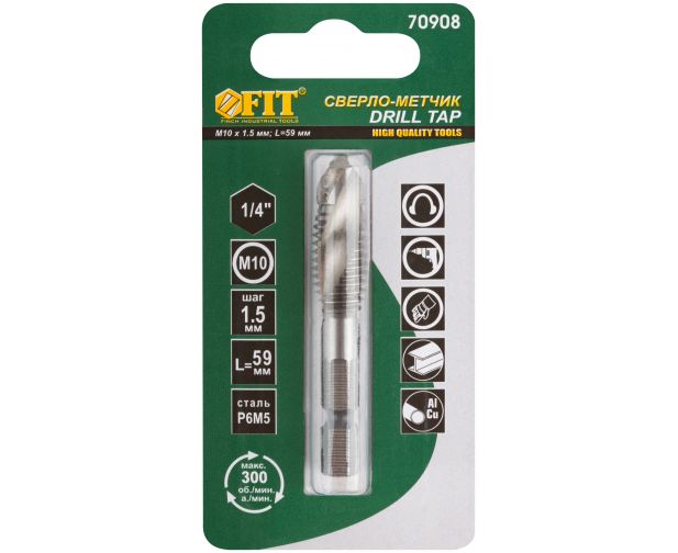 Сверло-метчик комбинированное метрическое FIT 70908 , М10х1,5 мм, 26/59 мм